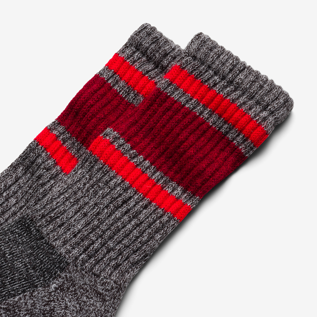 Line of Trade partnered with American Trench to rework their bestselling Retro Stripe Sock. Knit from a soft, twisted marl yarn, it delivers the comfort of a boot sock without the bulk — padded underfoot, breathable on top, and easy to wear every day. Made in North Carolina and finished with American Trench’s signature bold stripe placement.