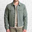Custom developed from a complex twill weave, this newcomer to the Montana line is defined by its dense wool weft and soft cotton warp that create a unique two-toned texture with a prominent denim blue top color and contrasting tan back tone. Heavy double-needle stitching, a custom flannel lining, and capacious pockets nod to the trucker's practical lineage, while its mid-hip length silhouette provides easy layering and smooth movement, making it the ideal companion for cold days and adventurous nights that’s bound to turn a head or two.