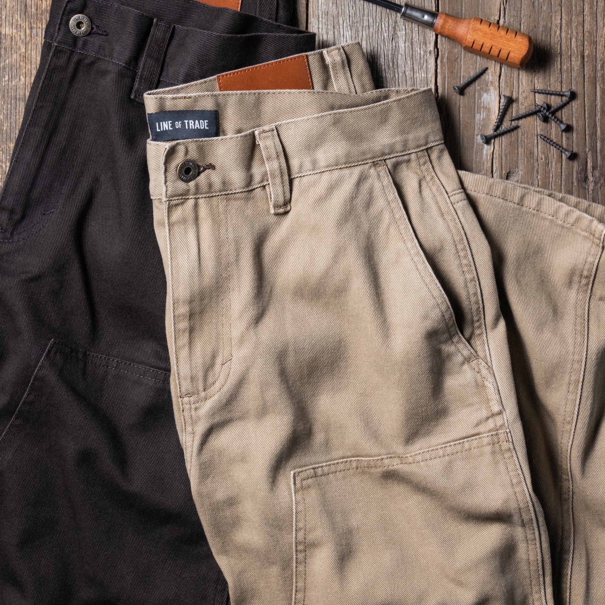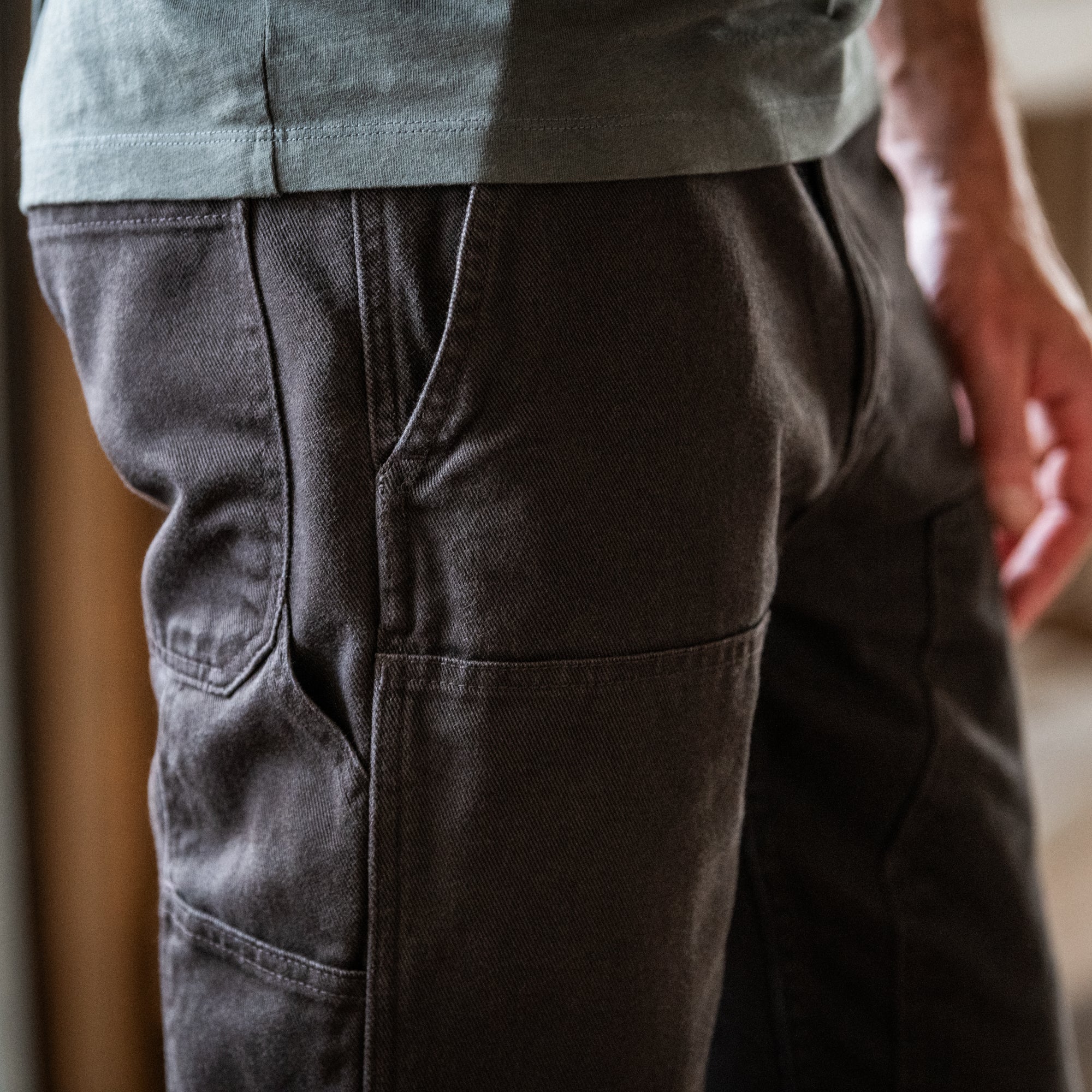 Sturdy 12 oz heavy grain twill delivers practical durability inspired by functional workwear for a well-rounded pair. The heavy garment-wash finish delivers a familiar, broken-in feel from the very first wear. The reinforced knee patches shrug off abrasions while the double carpenter's pockets ensure you're equipped for whatever comes their way.