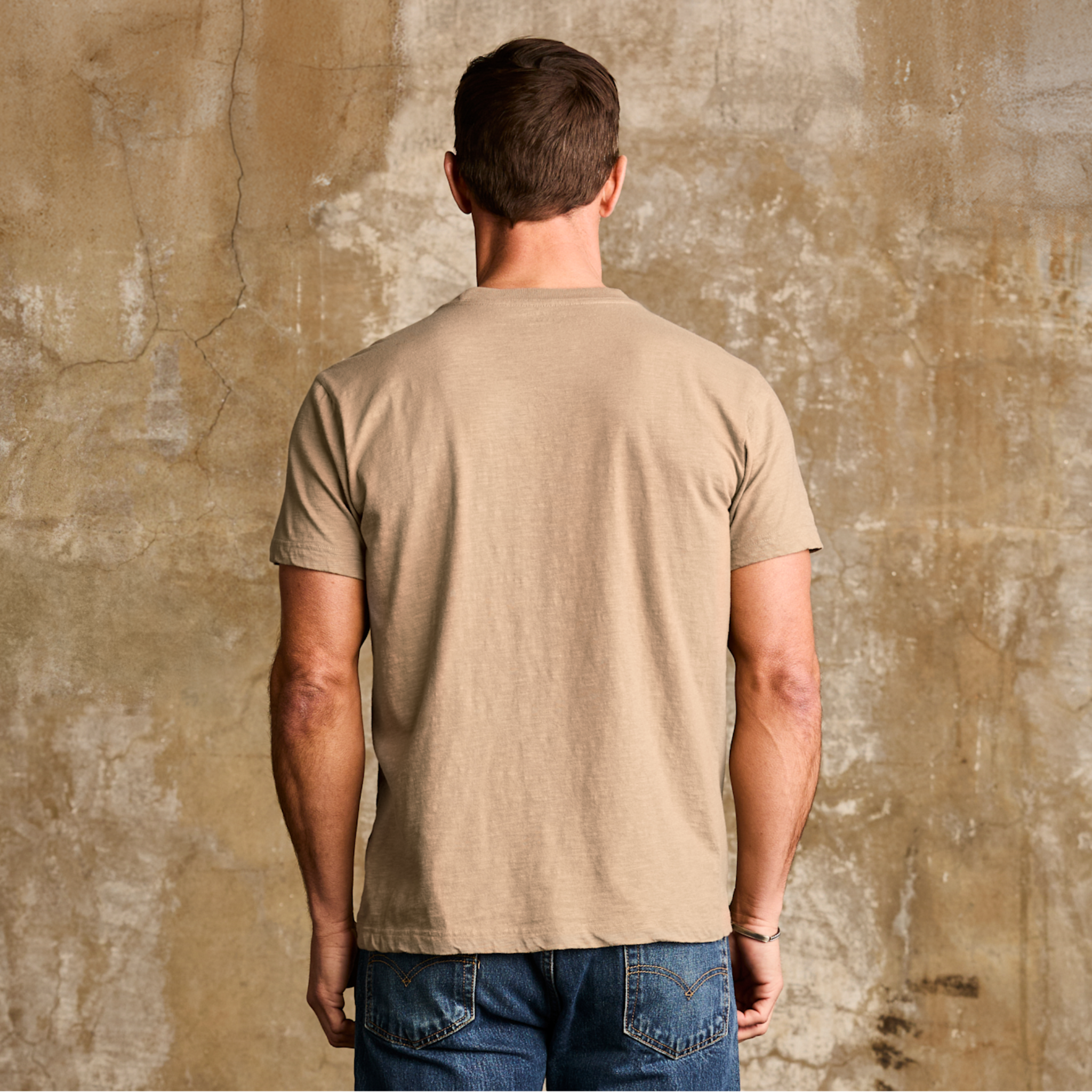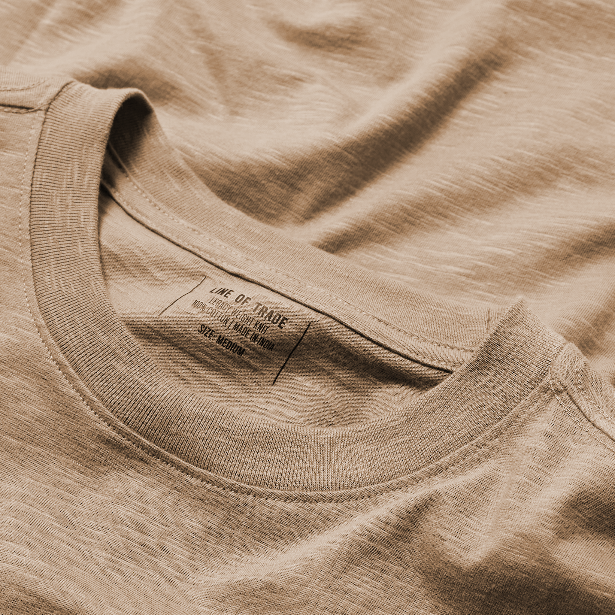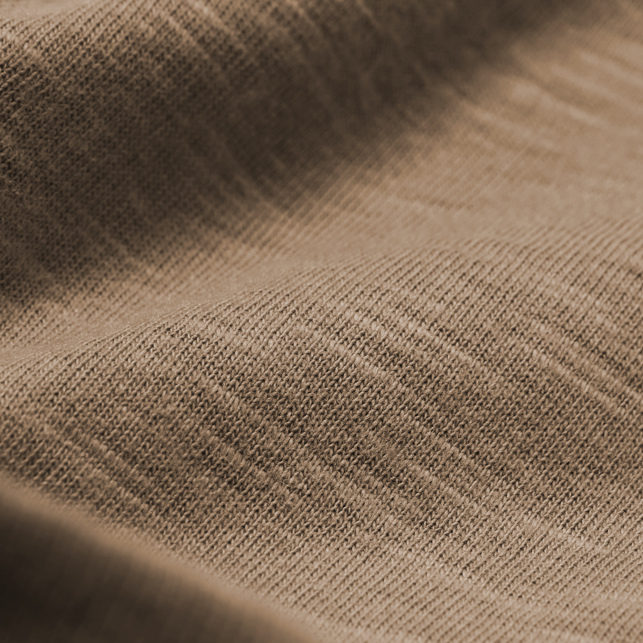 This butter-soft 170g slub cotton knit shirt drapes the way a good tee should - no pulling, no bunching, just a clean silhouette that sits right. The natural variation in the slub gives it visual depth without adding weight, which means it works in heat without feeling like a compromise. Taped neck and shoulder seams keep the structure intact wash after wash. Light enough for July. Sharp enough for anywhere.