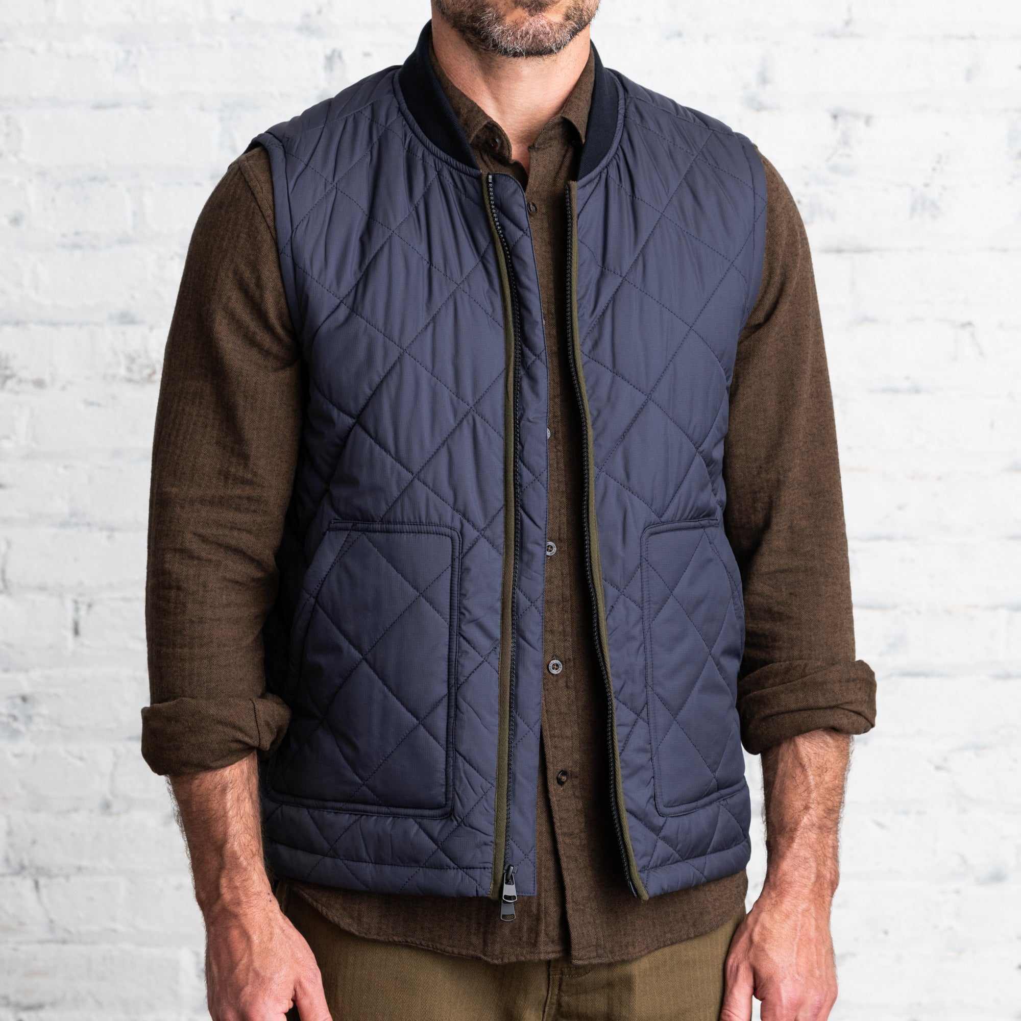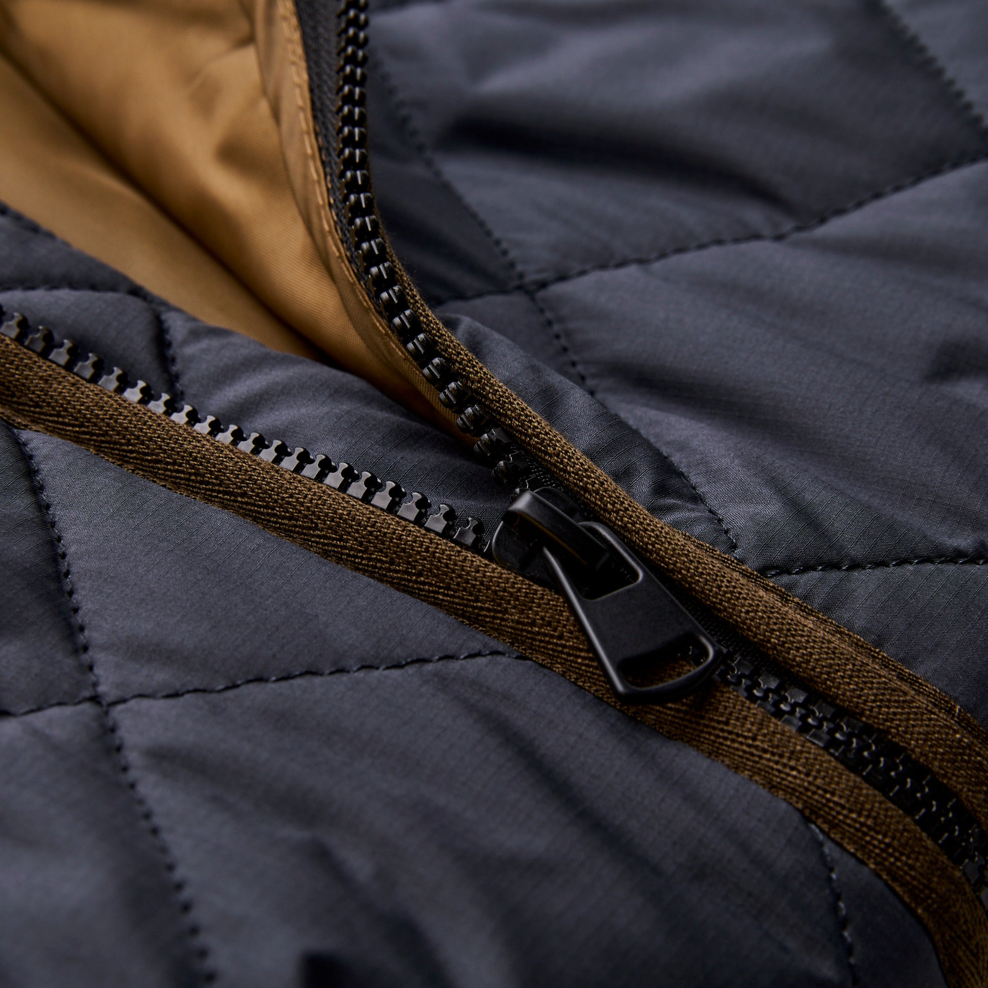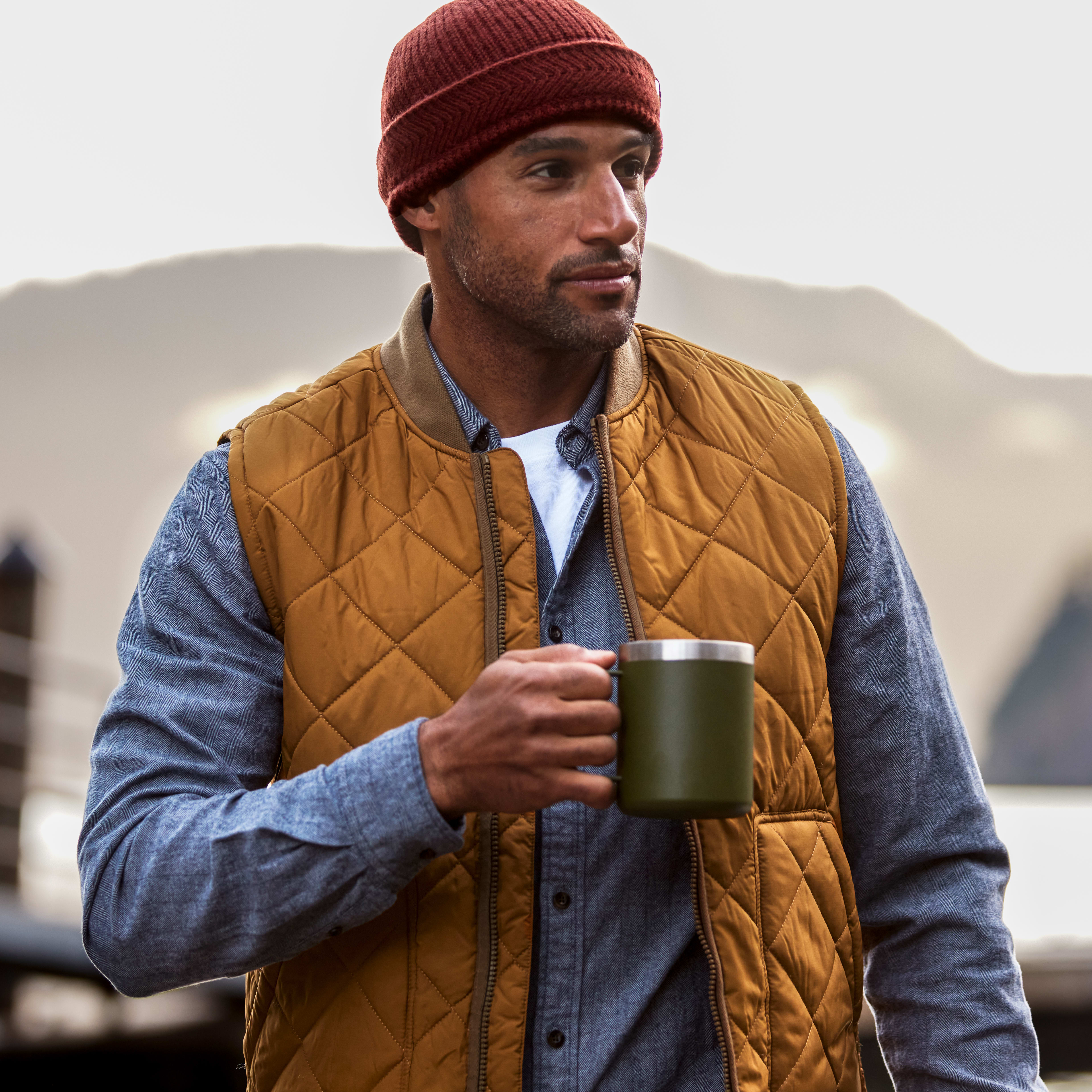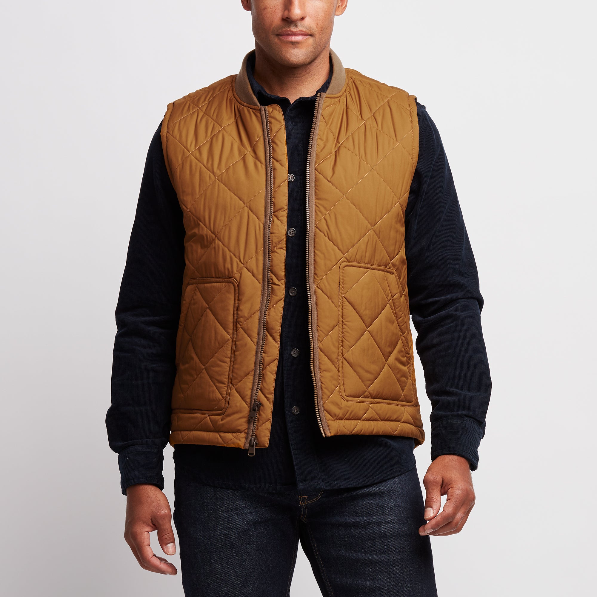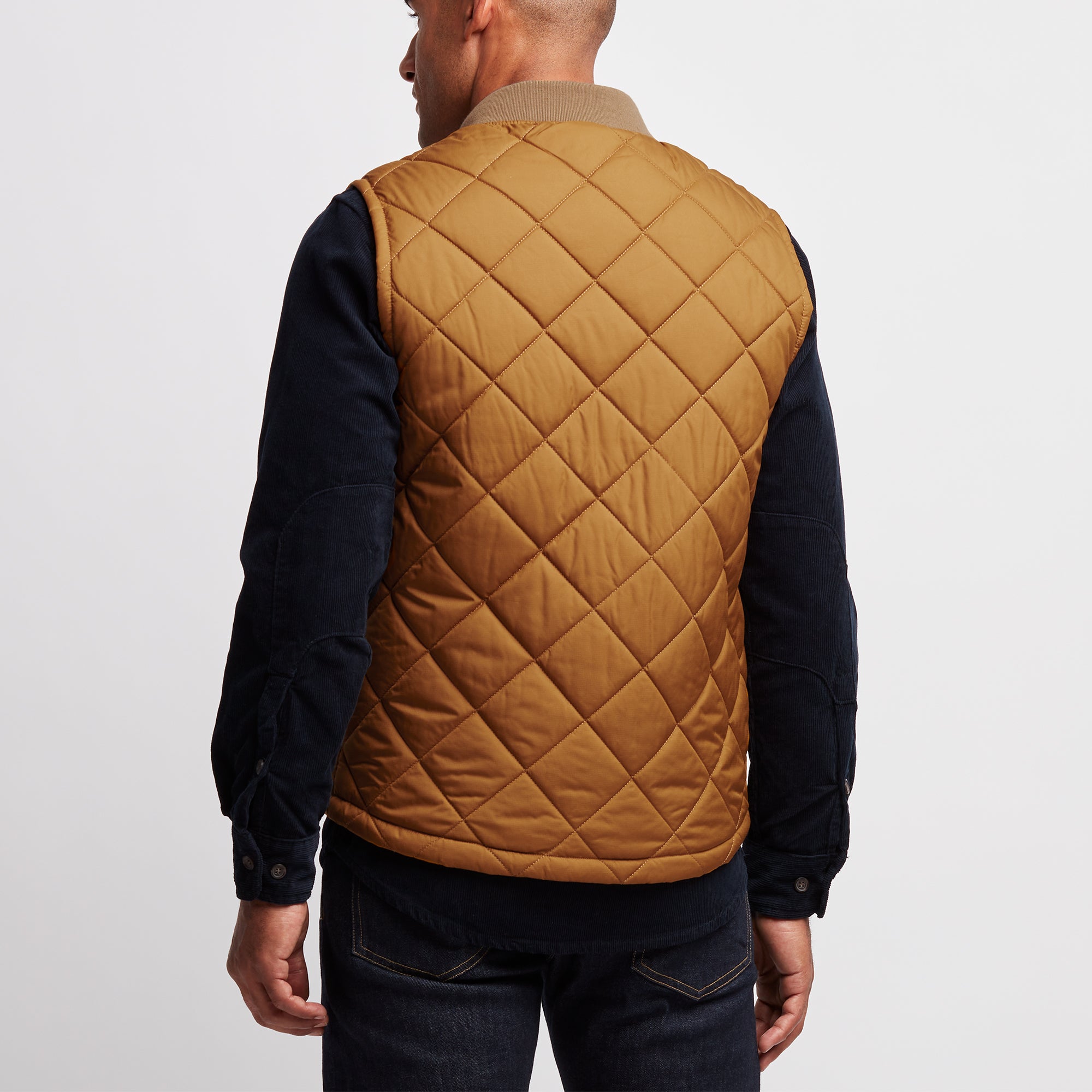 Equipped with a lightweight 30 denier micro-ripstop shell, the Essex Quilted Vest is built to withstand the elements without weighing down the journey. Functional 3" diamond quilting ensures even distribution of high-loft 100 gsm fill for optimal warmth without the bulk. A durable water-repellent coating keeps drizzles at bay while a two-way zip closure provides an adjustable fit and superior breathability. Extra warm details like flannel-lined pockets, a doubled 1x1 rib knit collar, and a drop tail hem complete its practical style and comfort.