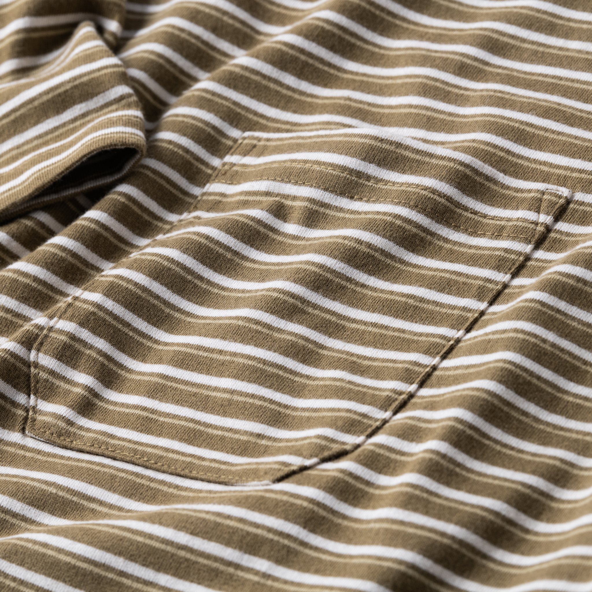 Even on something as simple as a classic striped shirt, using the right fabric, construction, and dye can elevate things to the top of your drawer after each wash. That’s what Line of Trade kept in mind with their Sturdy collection as they developed the perfect tee shirt, now with a subtle striped pattern. Cut from a substantial 7 oz jersey designed for all-season wear, these jersey pocket tees are as rugged as they are comfy. They’re made from ringspun cotton — which is softer and longer-lasting than standard cotton.