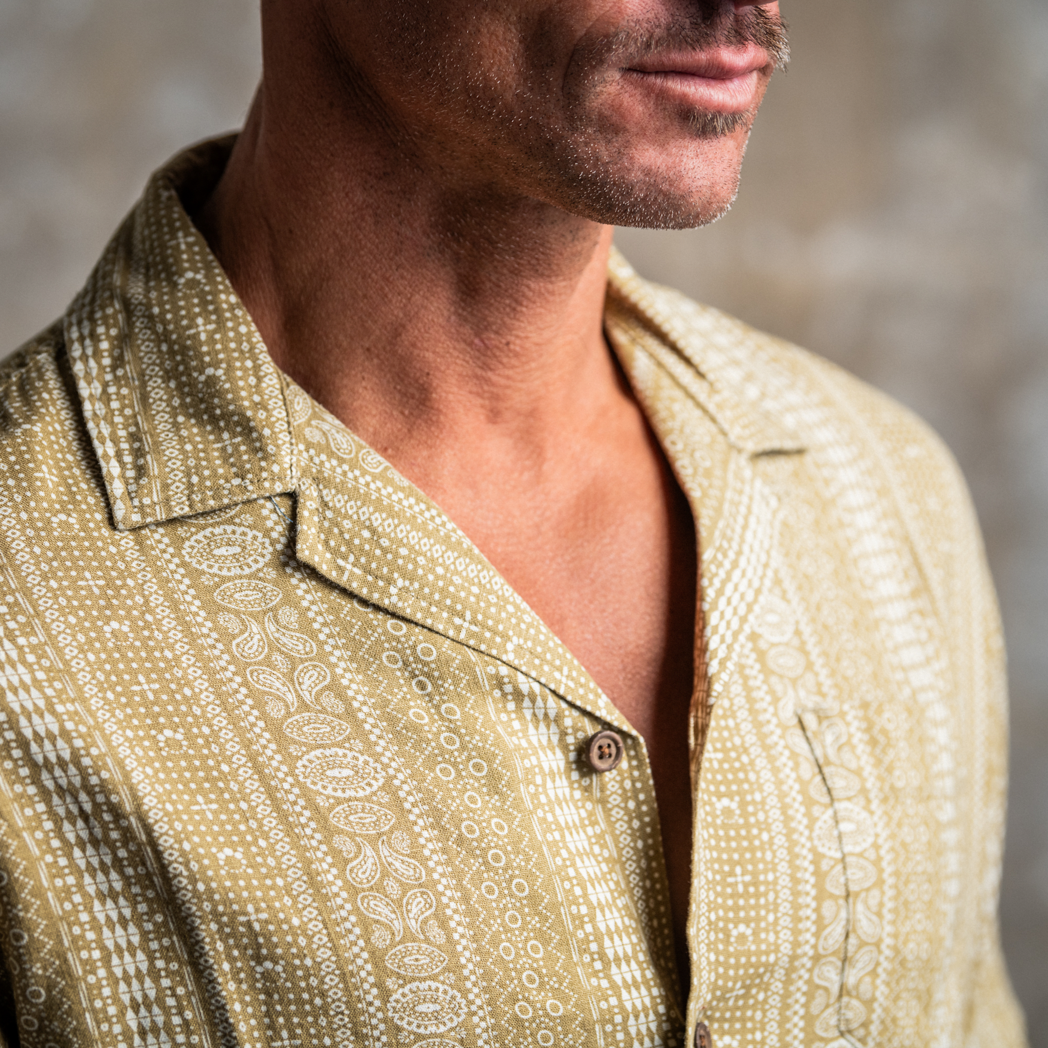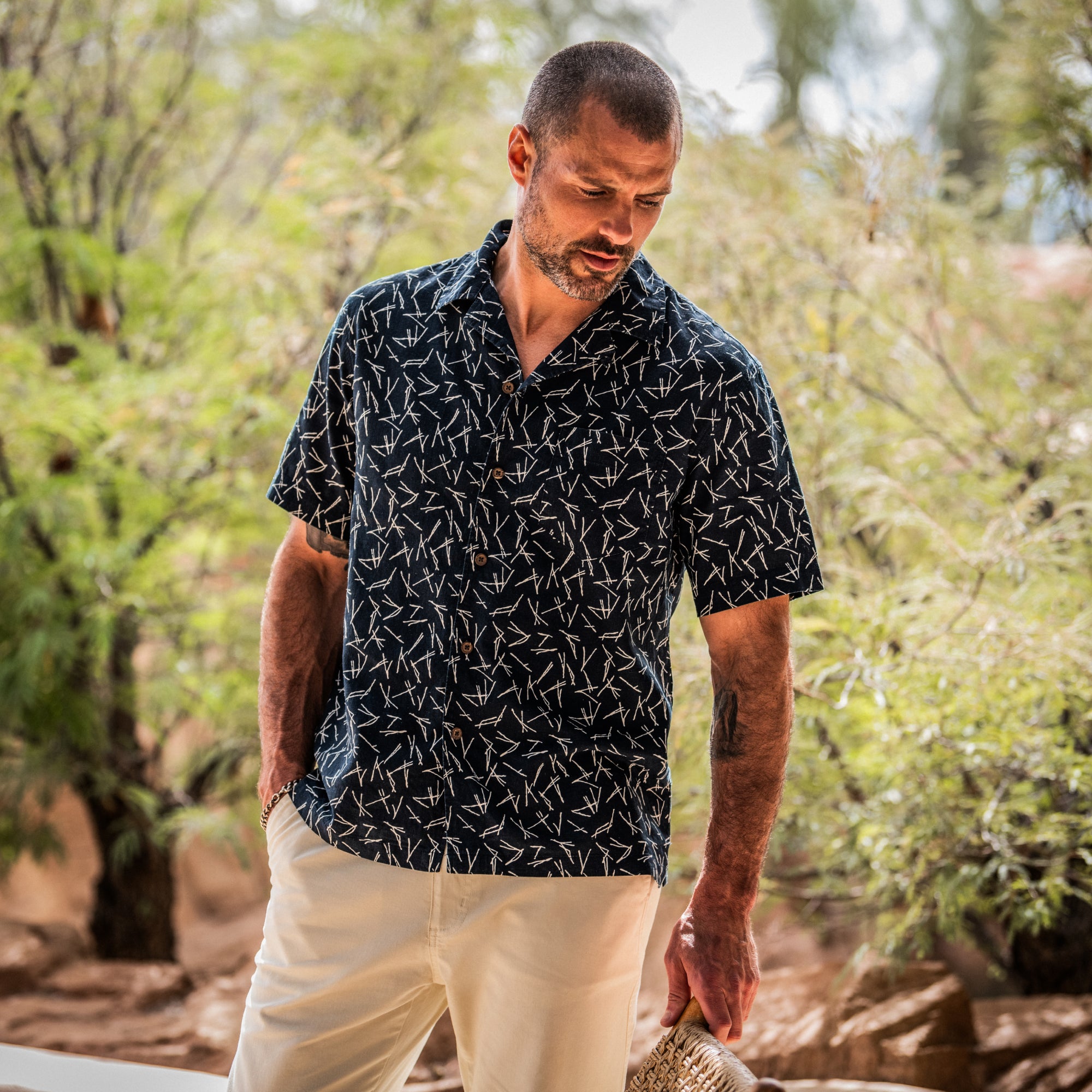 A fresh take on a classic warm-weather style. The Breeze Camp Shirt is cut from a custom blend of linen and viscose to answer summer’s call with comfort and breathability, no matter how hot it is out there. Complete with a relaxed silhouette, an open camp collar, and a square hem with side vents for untucked ease.