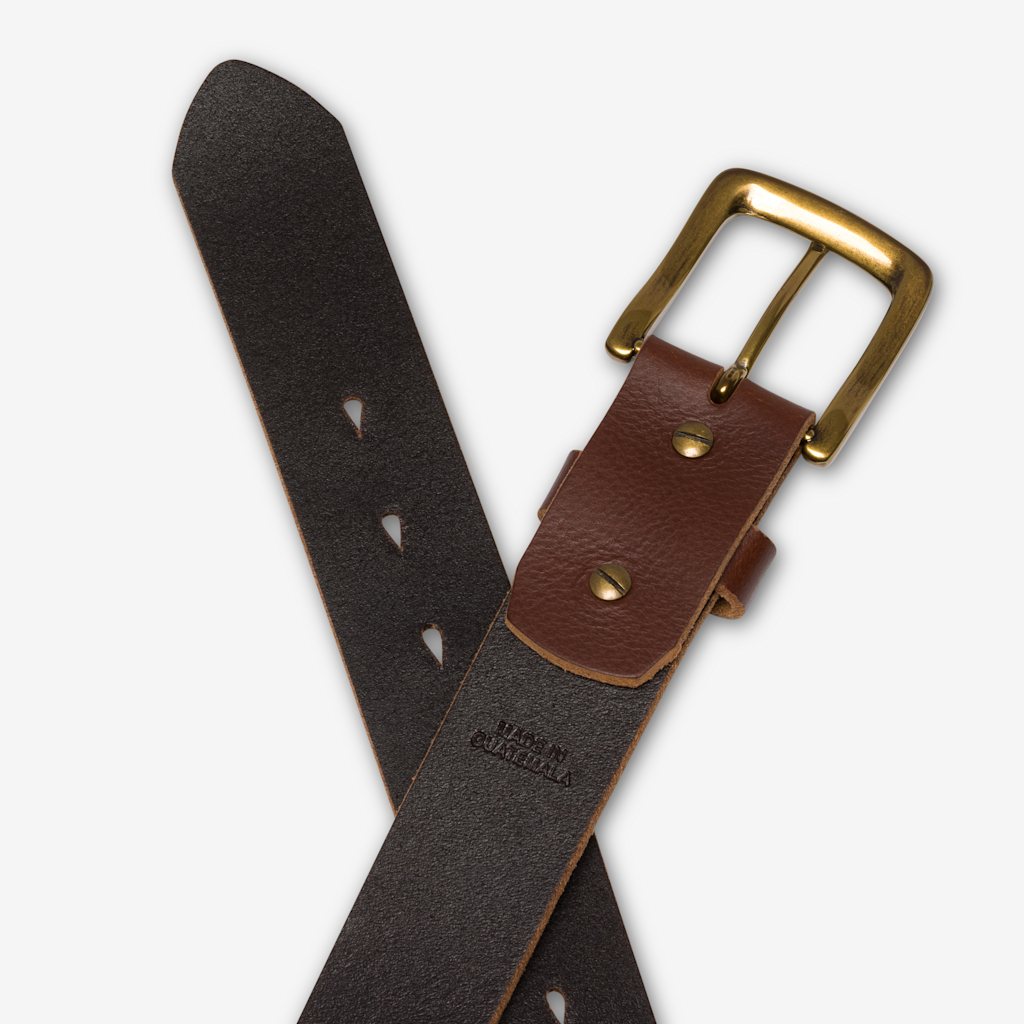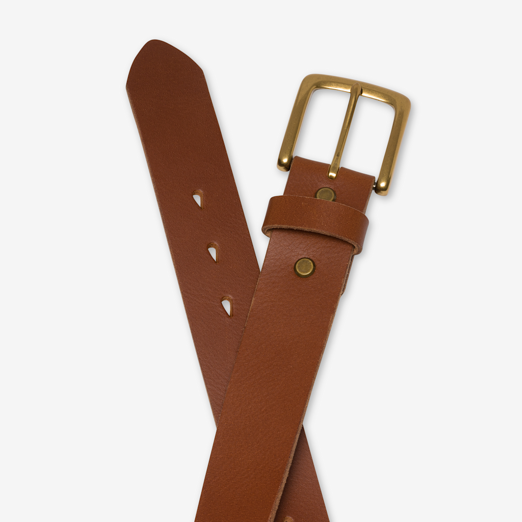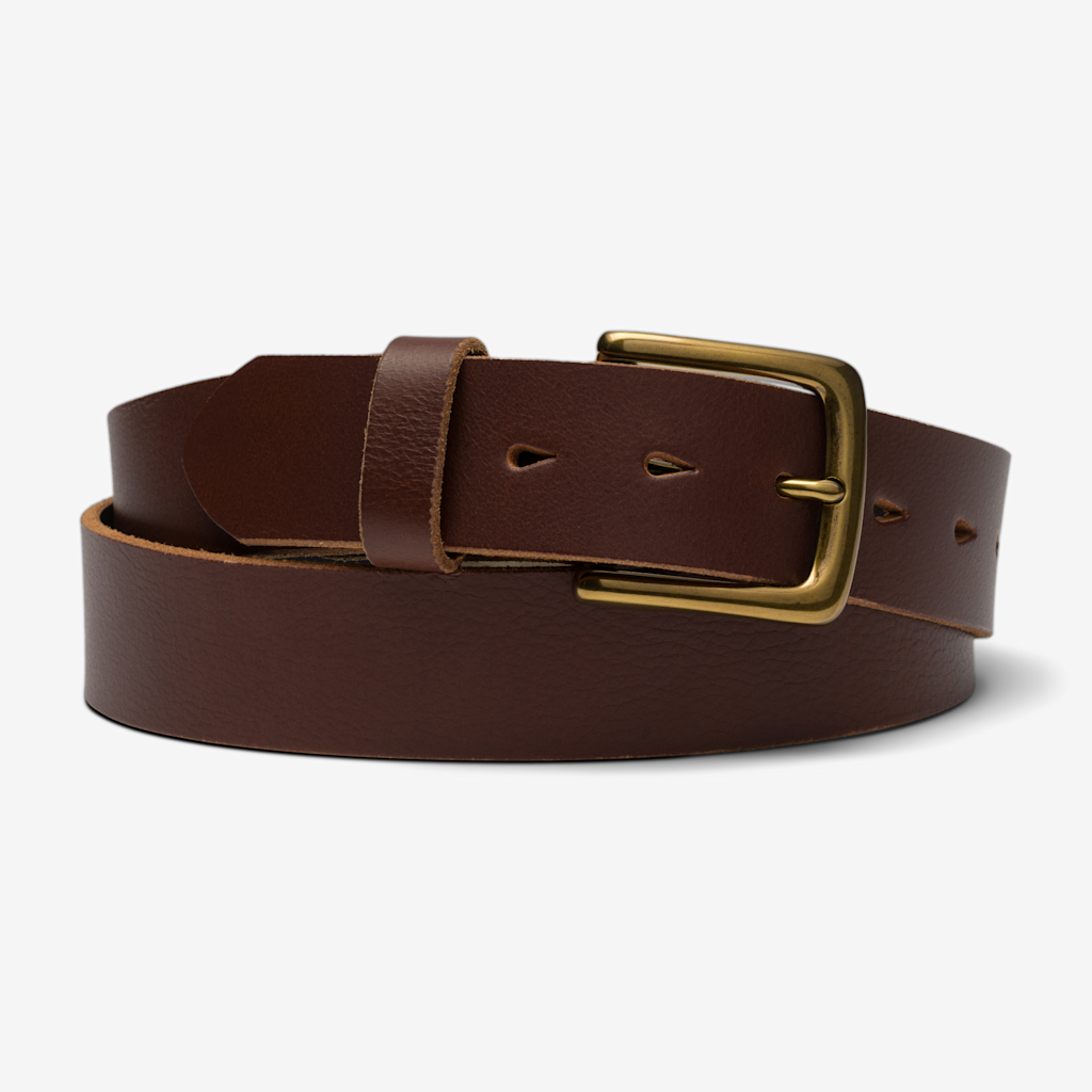 Cut from oiled bridle leather with a rounded edge and antique brass hardware, this belt brings durable construction and exceptional quality to your daily getup. It’s finished with Chicago screws so you can swap in your favorite buckle with a flathead screwdriver. Seven holes give you flexible sizing, and the 1.5" width works well with jeans, chinos, or work pants.
