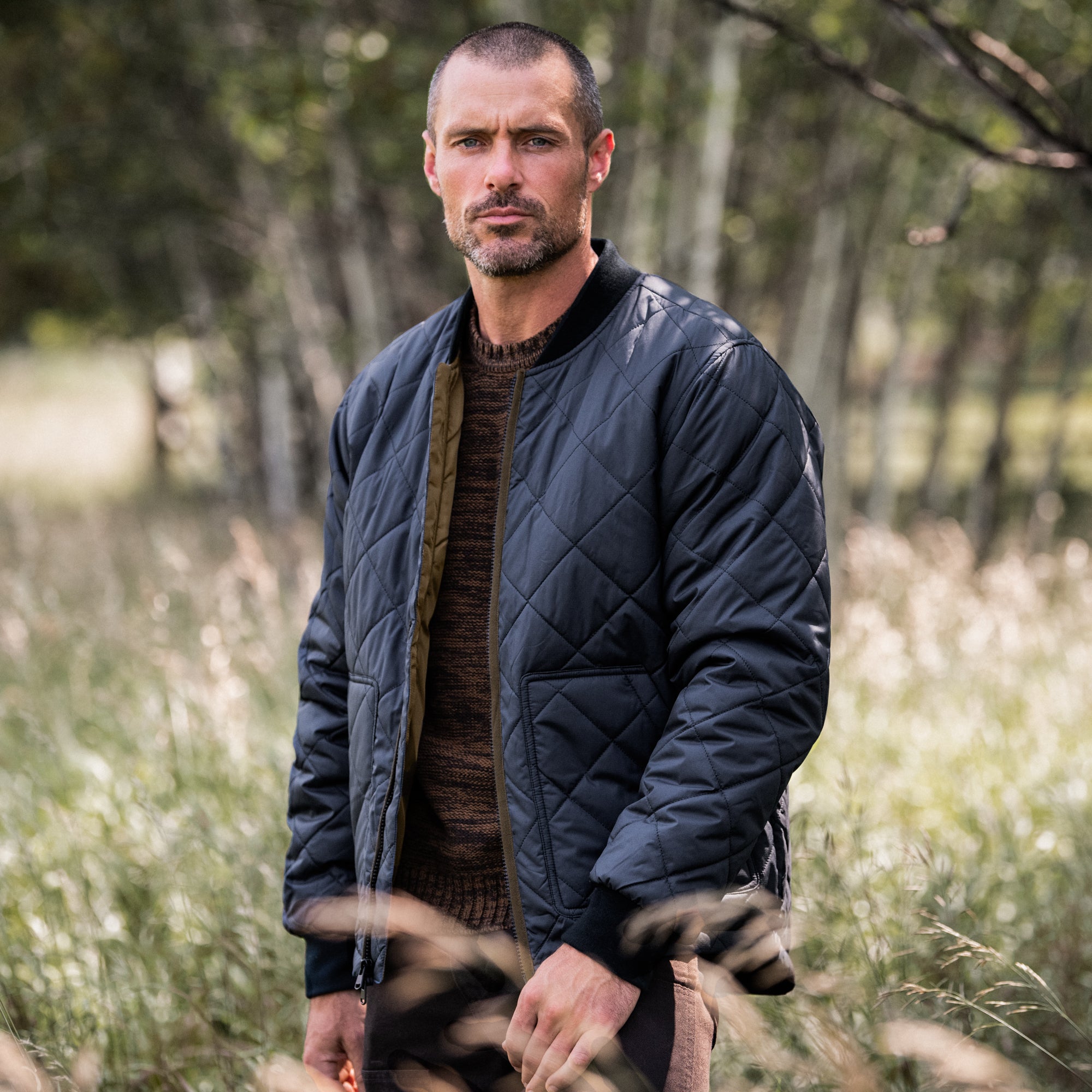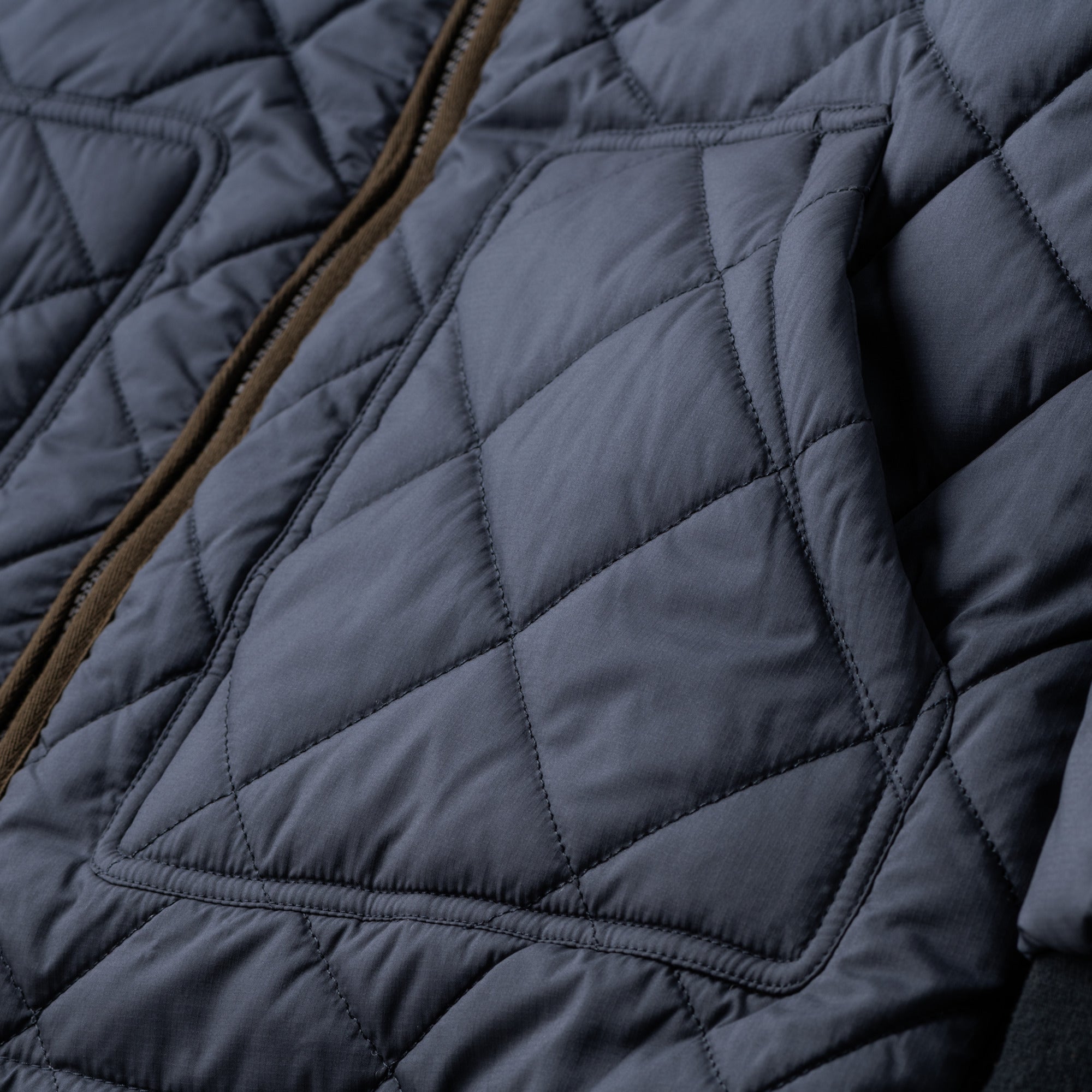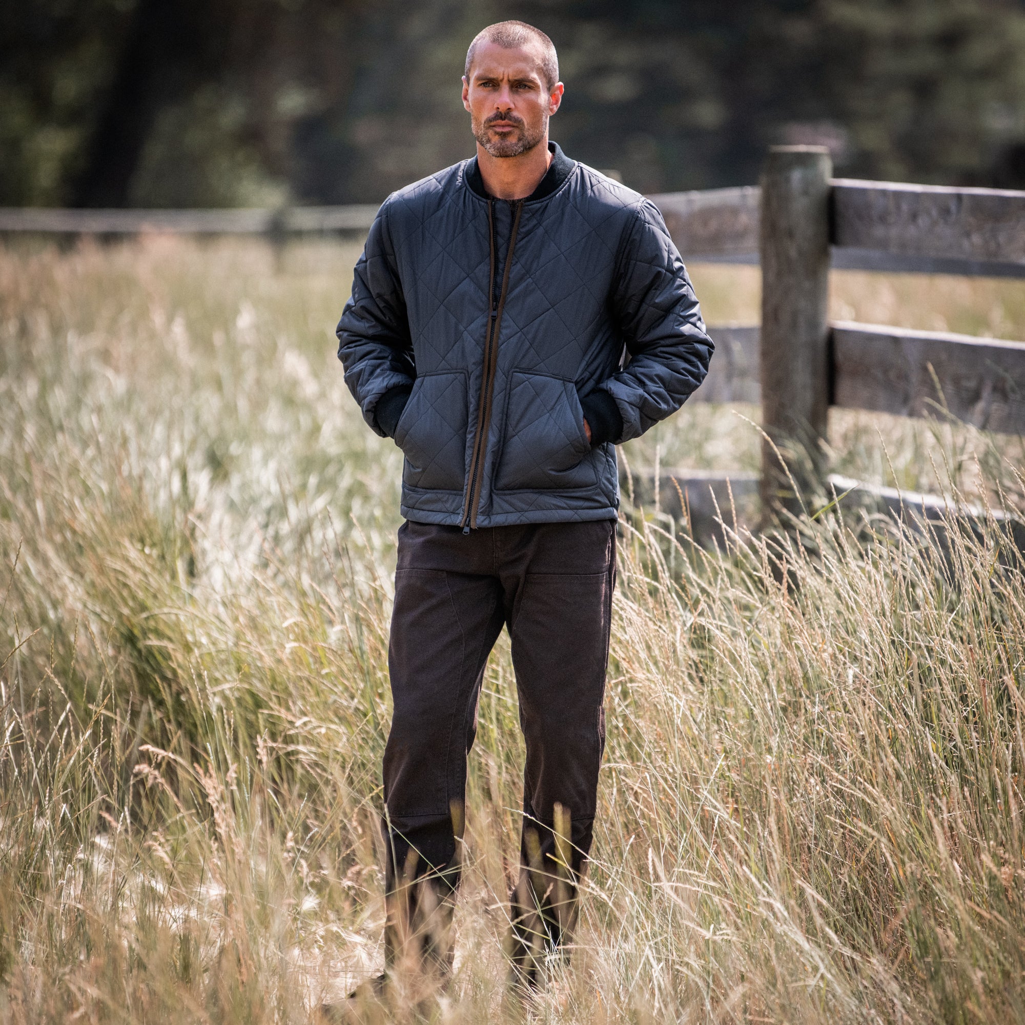 Enhanced with a water-repellent coating, the Essex Quilted Jacket gives the classic bomber jacket silhouette a little extra warmth without any bulk. It’s got a lightweight micro-ripstop on the outside, high-loft 100 GSM insulation on the inside, and 3” diamond quilting to hold it all together. The two-way zip provides an adjustable fit and superior breathability, and details like flannel-lined pockets, a rib-knit collar, and a drop tail hem really elevate the whole look.