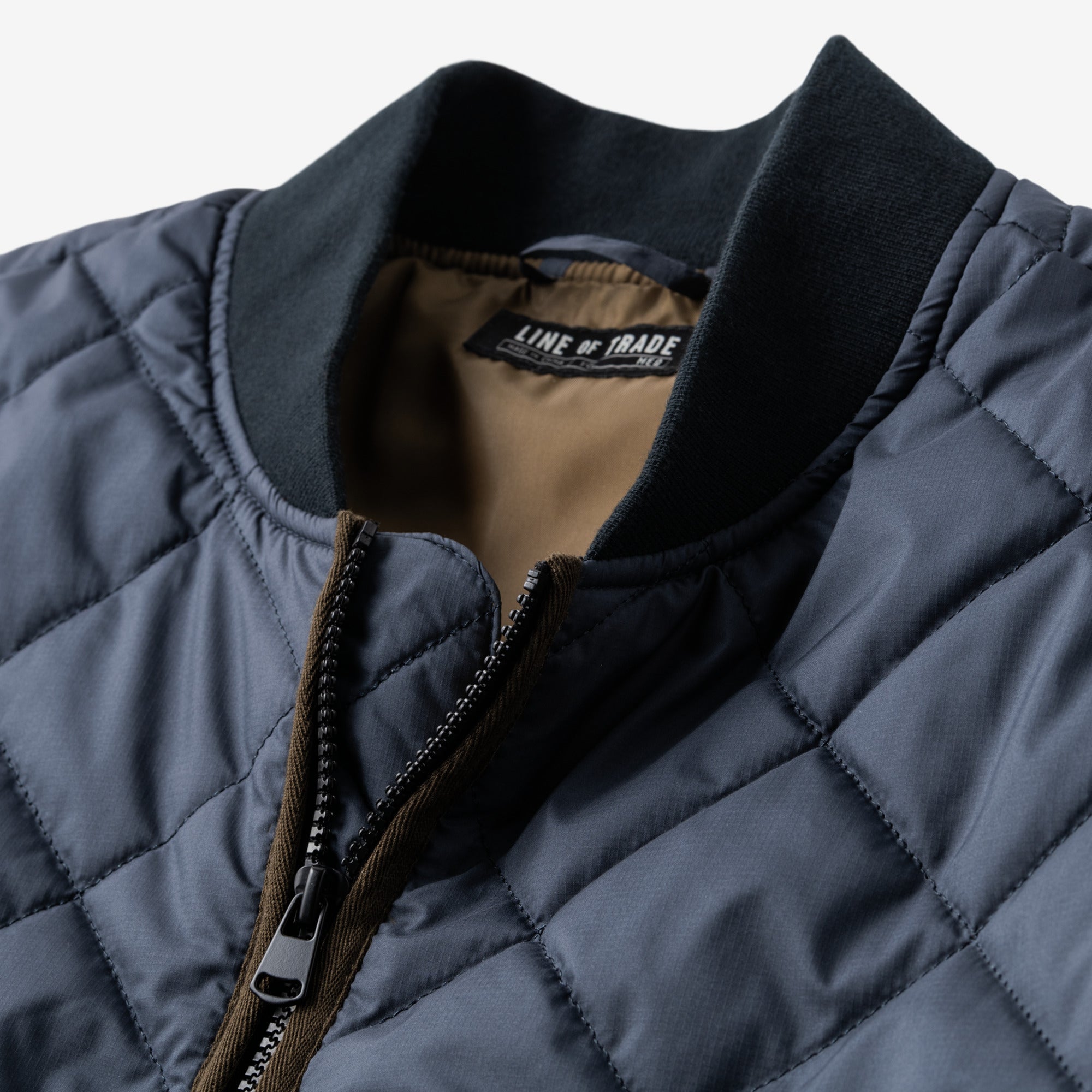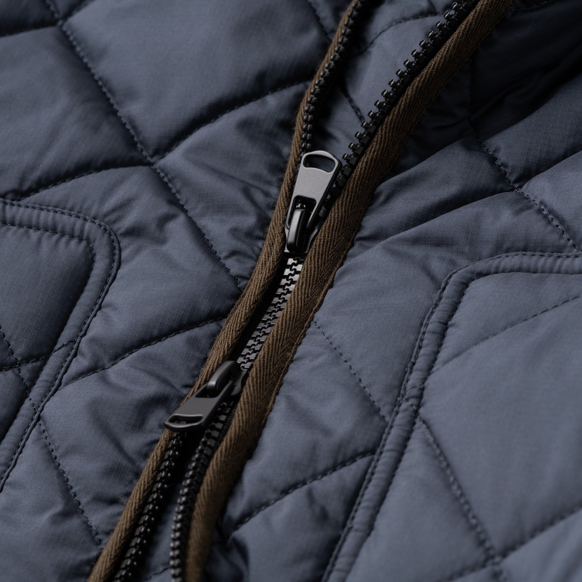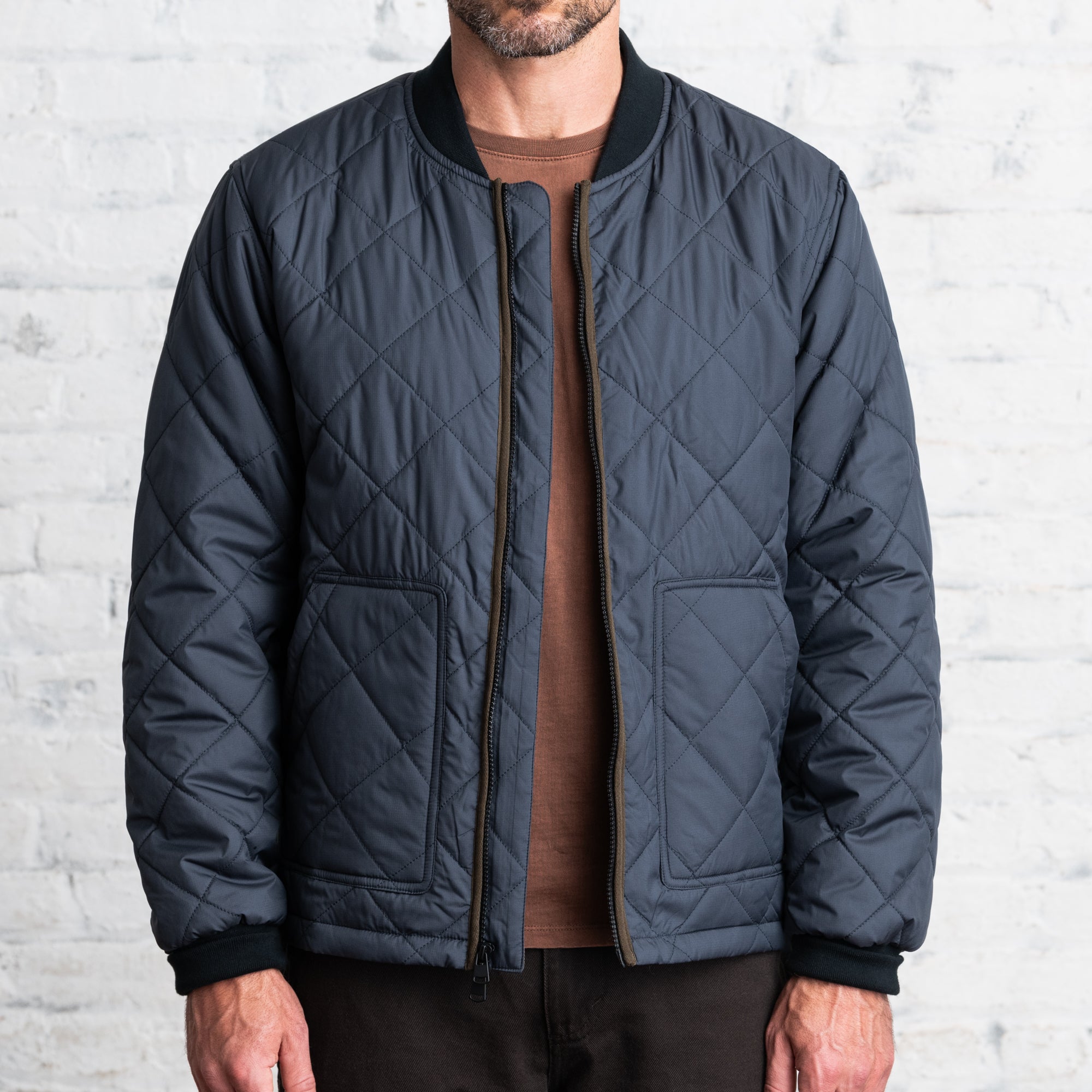 Enhanced with a water-repellent coating, the Essex Quilted Jacket gives the classic bomber jacket silhouette a little extra warmth without any bulk. It’s got a lightweight micro-ripstop on the outside, high-loft 100 GSM insulation on the inside, and 3” diamond quilting to hold it all together. The two-way zip provides an adjustable fit and superior breathability, and details like flannel-lined pockets, a rib-knit collar, and a drop tail hem really elevate the whole look.