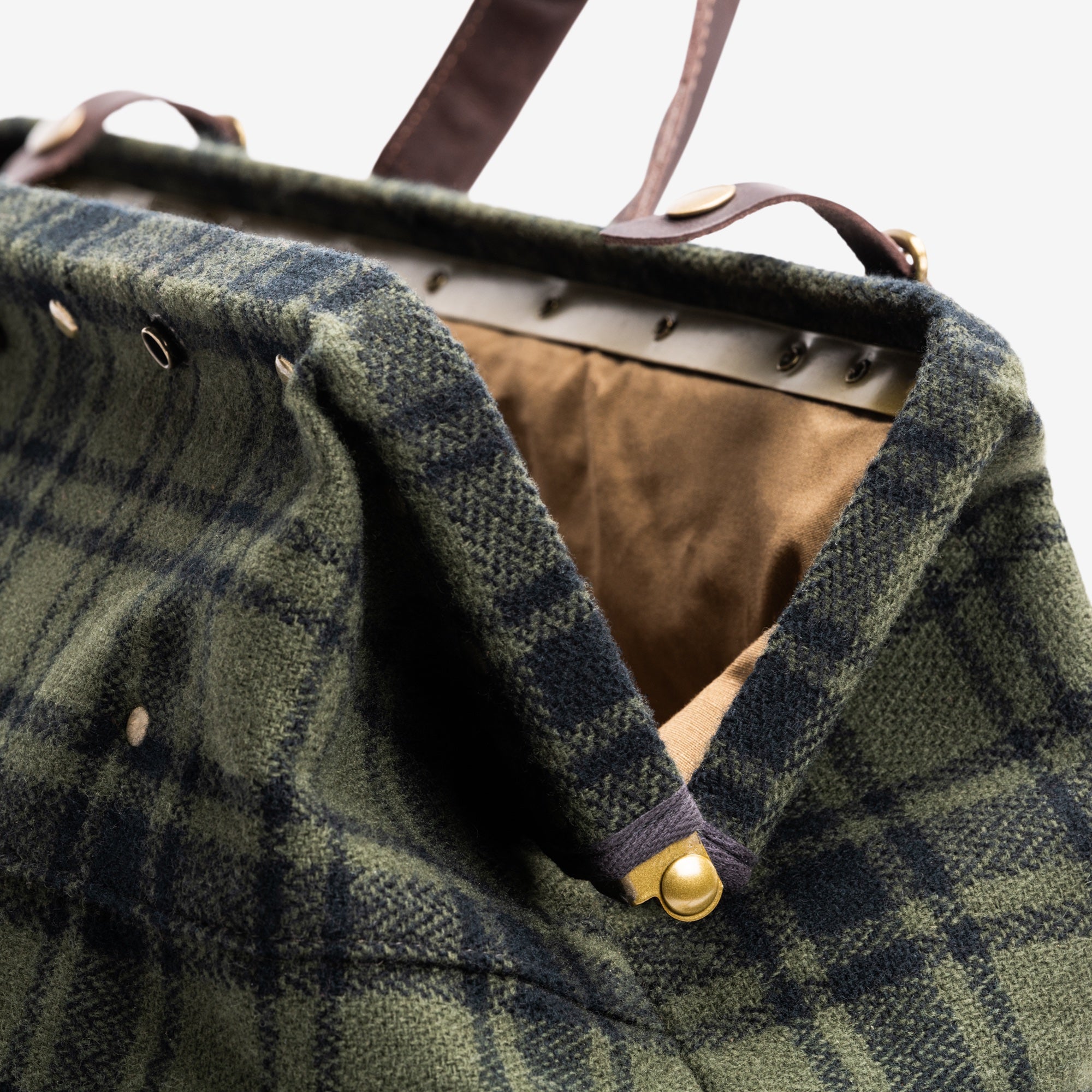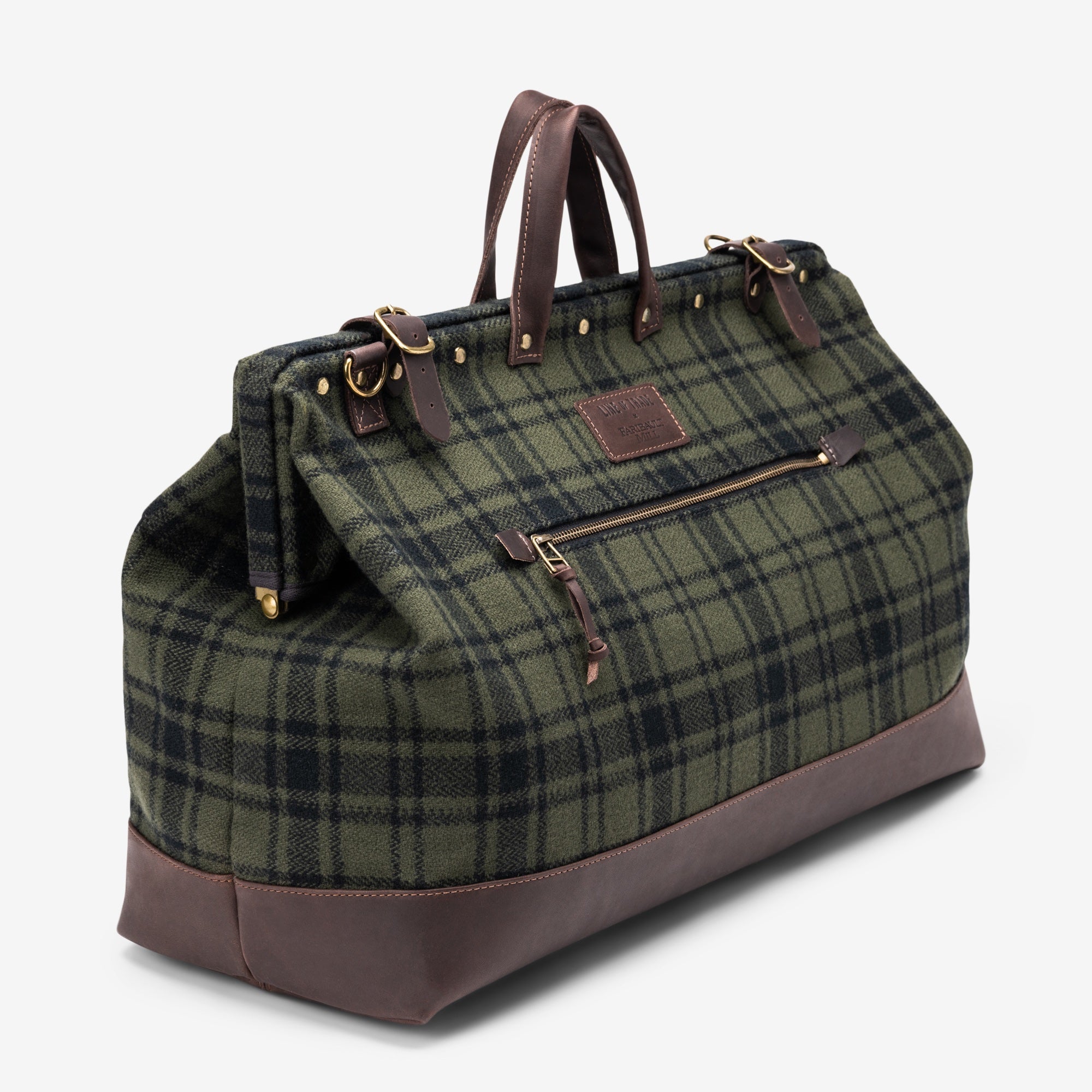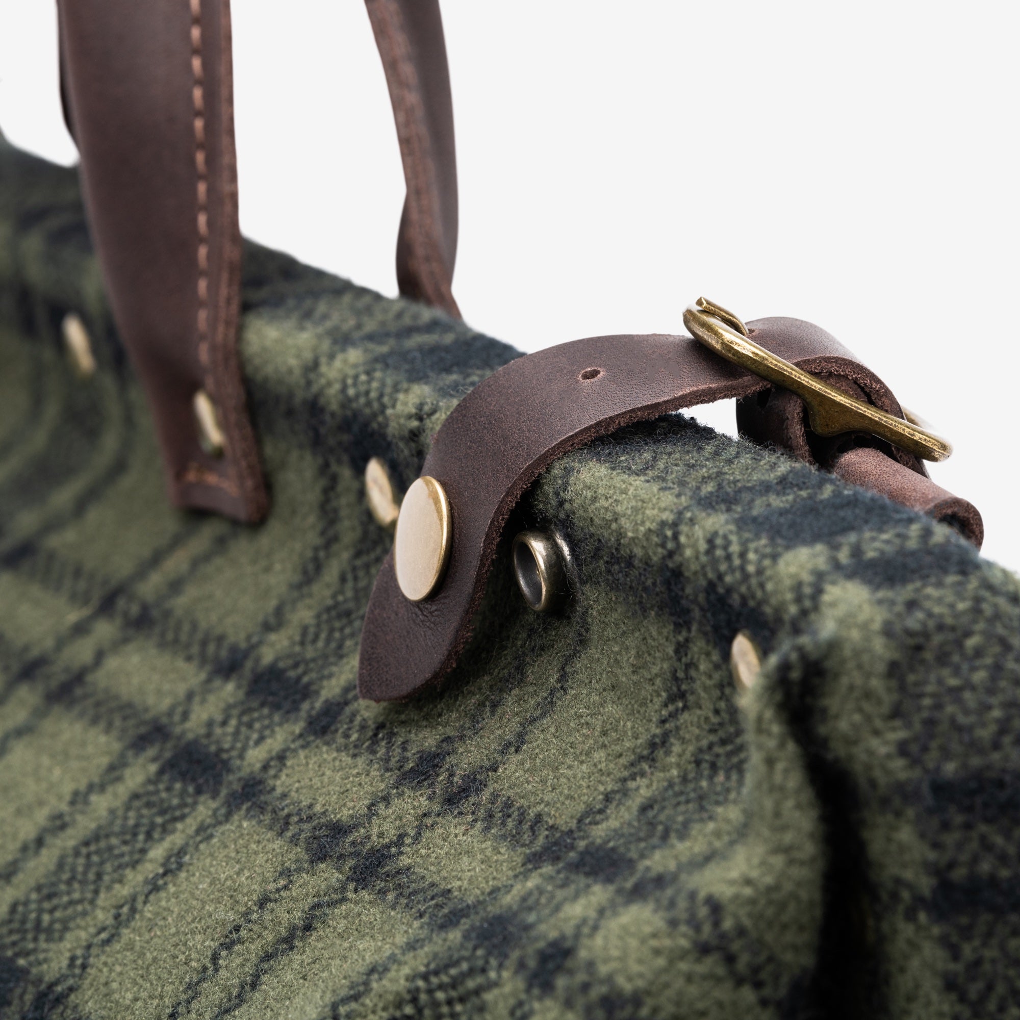 This special edition of the Weekender Bag outfits the bestseller in a custom plaid designed by the Line of Trade team and made along the Cannon River in Minnesota at Faribault Mill, a 157-year-old historic vertical wool mill and one of the last of its kind in America. True to its stonemason origins, it’s built with a roomy interior for plenty of storage space, an interior pocket for a laptop, a zippered security pocket, and a sturdy metal frame that stays open and upright for easy packing. Ready for secure transport, this travel duffel bag features handsome leather handles and buckles made by a Minnesota tannery, a removable crossbody shoulder strap, and a back trolley loop to slide onto luggage handles.